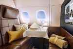The nine First Apartments set across a single-aisle, offer a private living space with a large leather lounge chair and an ottoman which opens up to become a separate 80.5″ long fully-flat bed. The First Apartment is one of the most spacious in its class and also offers a 24″ swiveling LCD TV monitor and personal vanity unit. For the first time, Etihad plans to eventually offer The Residence as an optional extra for guests to further enhance their First experience.