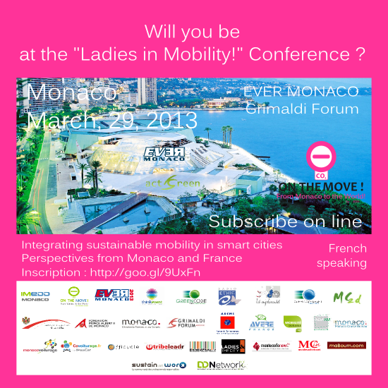 On March 29, 2013, at Grimaldi Forum Monaco, the “Ladies in Mobility!” network organized their first conference bringing together the Principality of Monaco and France around women and sustainable mobility issues. For one day, Monegasque and French organizations (public organizations, businesses and NGO’s) wdiscussed the issue of integrating sustainable mobility in smart cities.