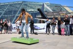 flying hoverboard which can leviate up to 25 cm. The ArcaBoard, the brainchild of engineers in New Mexico, flew in front of visitors and press on the Grimaldi Forum’s Esplanade.