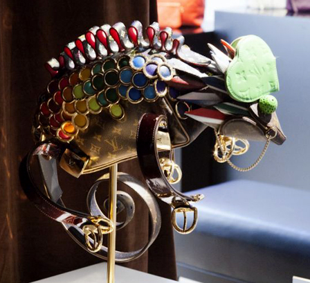 Celebrating the launch of the My Monogram service on Small Leather Goods, Louis Vuitton hosted a party at famous Paris taxidermy store Deyrolle. The place was populated with small cute creatures sculpted from the Louis Vuitton wallets, coin pouches, belts, and bag hardware.