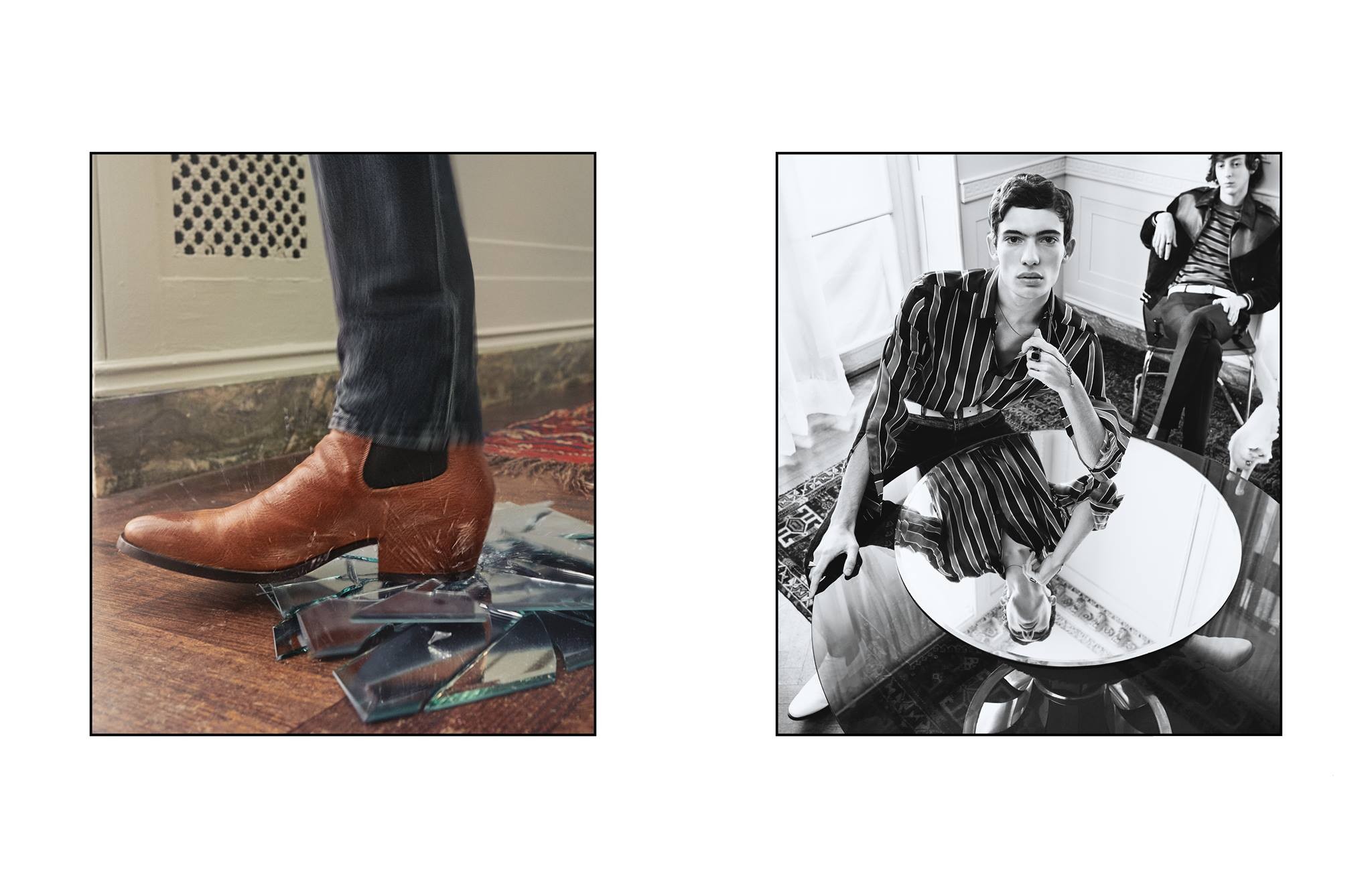 Artistic director Clare Waight Keller also presented the Spring-Summer 2018 campaign, shot by Steven Meisel in a private mansion in upstate New York. A Seventies vibe comes through in black and white portraits with an offhand attitude, as if the shots were taken among friends: the images are like an invitation to hang out with the in-crowd.”The intimate ambiance has a Surrealistic current running through it: A group of young rock kids seem to be lingering on as if emerging from an all-night party.”