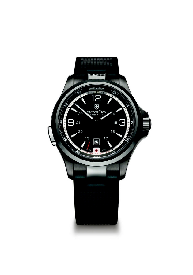 This high-performance timepiece makes riding the urban or wild waves easier. Like all watches of the Ibach based house, the Night Vision offers a reliable and tested formula of Swiss Made quality standards for ultimate functionality. Functionality is the mantra of the 2014 Night Vision and all Victorinox watch and travel gear ranges. As you can see the timepiece is combining the advantages of state-of-the-art Swiss watchmaking (Quartz movement Ronda 705), the functions of a skilful tool, and a captivating utilitarian design enhanced by two new bracelets. Design is not just what it looks like, design is how it works. All the functions of the watch can be operated intuitively using a push button located between 8 and 9 o’clock on the 42mm stainless steel case water-resistant to 50 meters / 164 feet.