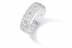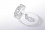 Light and feminine, the intricate open gold motif of the ‘dentelle’ bangle and ring create the illusion of delicate lace, set with