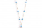 brilliant-cut diamonds embroidered into the gold to emphasise the highly crafted gold work. Playfully capturing the light, a white gold sautoir necklace displays the delicate ‘dentelle’ pendant from which a profusion of diamonds and turquoises flow.