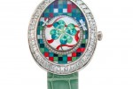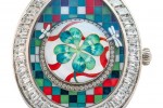 A unique movement exclusively developed for Fabergé by award-winning movement specialist, Agenhor Manufacture,frees the luxurious timepiece’s hands from the centre of the dial. Instead, 50 brilliant-cut diamonds (0.26 cts) frameAnita Porchet’s cloisonné Grand Feu enamel painting of a four-leaved clover at the heart, much like the surprise at theheart of each Fabergé egg, a cue that feels entirely appropriate given the egg-shape bezel, framed by 36 larger,baguette-cut diamonds (8.91 cts), carefully executed to geometric precision.