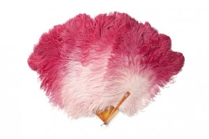 Folding fan, mount in ostrich feathers dyed in degrade, tortoiseshell sticks decorated with a crown and arms in platinum, diamonds, rubies and enamel, 1928, Altenloh E&R jewelers, Brussels
