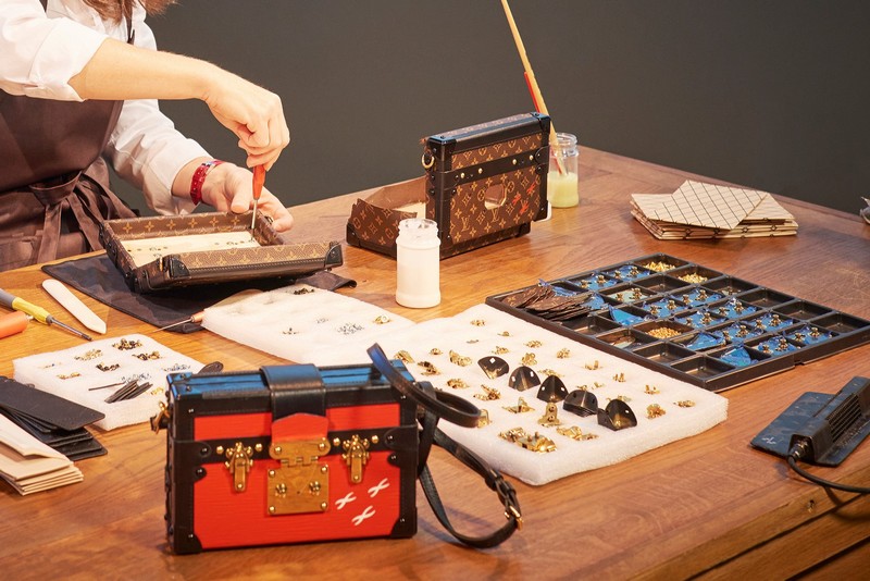 The formula to plant the seed in their heads takes in Ghesquière’s modern vision for the house (he joined in 2013) and an emphasis on those classic party tricks of a heritage brand – history and craftsmanship. Vintage trunks are displayed alongside new designs, and in one room visitors can watch two artisans from the Louis Vuitton atelier putting together parts of the famous bags.