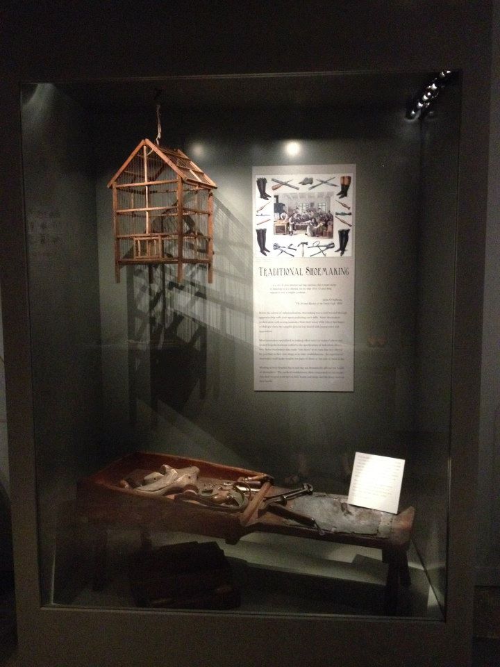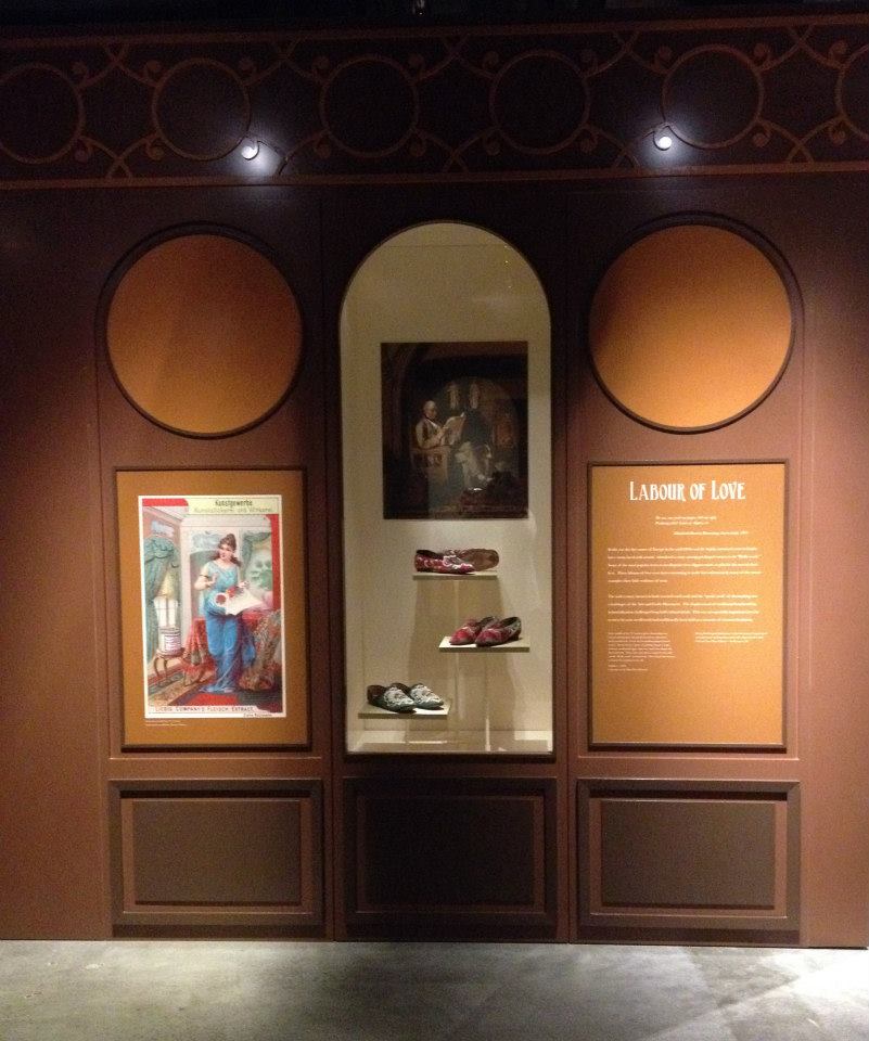 The exhibition also looks at shifts in the making of fashion from independent craft to fragmented labour completed in garrets or on factory floors. The move from traditional shoemaking to factory-made footwear is also emphasized as is the role of those workers who were integral to the presentation of the fashionable figure from the seamstress to the shoeshine boy.