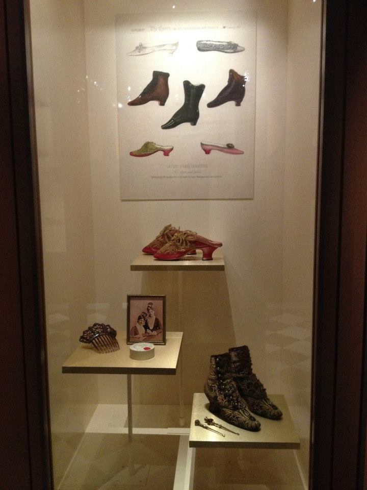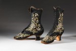 Featuring over ninety artifacts from the Bata Shoe Museum’s extensive holdings augmented by loans from private collections the exhibition highlights dresses that span the century, mauve- hued footwear dyed with the first coal tar colours invented in 1856, beautiful hand-embroidered boots manufactured by the exclusive Parisian shoemaking firm of Francois Pinet, impossibly narrow Adelaide boots and gloves worn by Empress Elisabeth of Austria and a corset with a sixteen-inch waist from the Cleaver/Suddon collection.