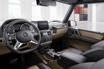 The standard equipment of the G‑Class designo manufaktur Edition also includes the “Exclusive package” (consisting of the Seat Comfort package including multicontour front seats and seat climatisation for the driver and front passenger, leather-lined dashboard, 4 illuminated door sills and a designo roof liner in black DINAMICA microfibre). The “Sport package” includes the Exterior Stainless Steel package (running boards on the right and left, sports exhaust system (for G 500) and black velour floor mats).
