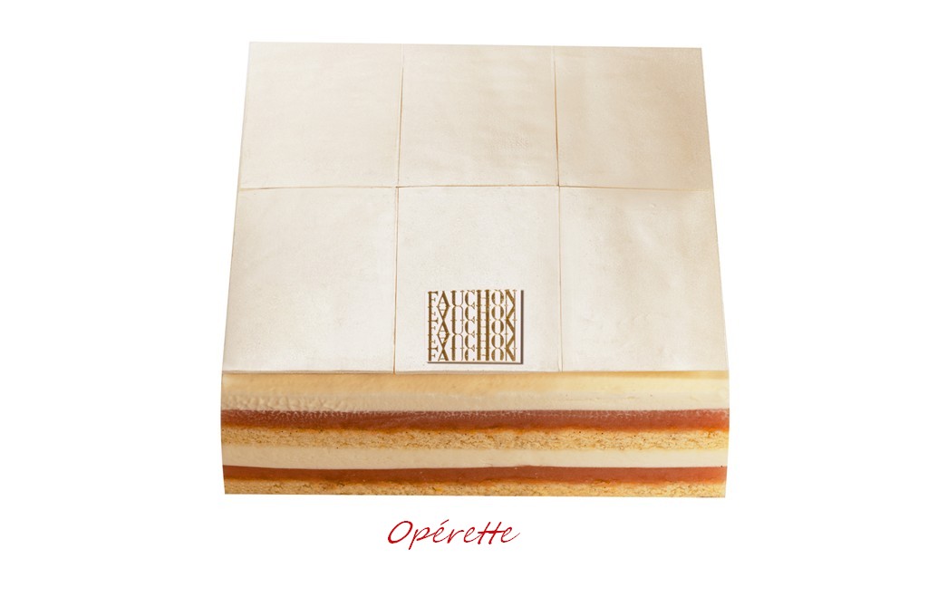 The patisserie collection includes also: “le fraisier de Biarritz”, a jelly with strawberries and raspberries in a white chocolate chantilly with Madagascar Bourbon Vanilla, strawberries Mara des Bois and a blanket of almond paste; a light flourless cake named l’Abricotier de La Baule; l’Opérette and Fauchon cake.
