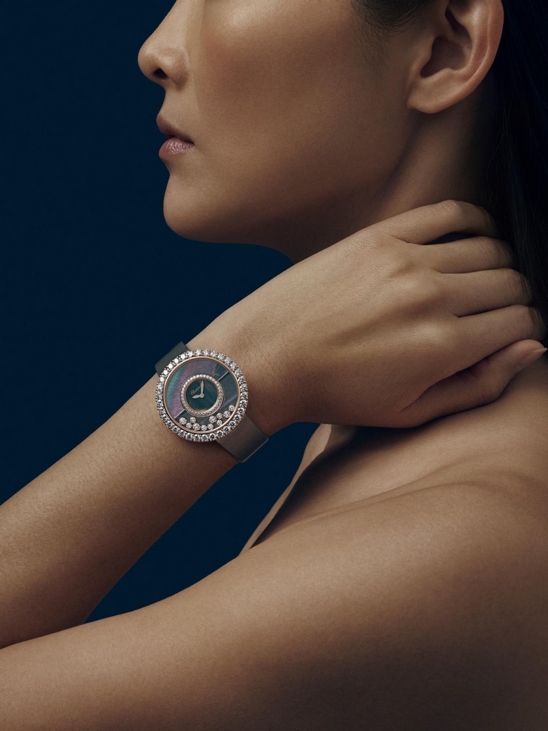Chopard Happy Diamonds Joaillerie: new 15 dancing diamonds swirl around the dial in a playful game of hide-and-seek.