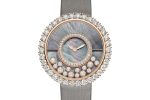 Synonymous with Joie de Vivre (a French phrase often used in English to express a cheerful enjoyment of life,) since its creation in 1976, the Happy Diamonds collection welcomes a new watch inspired by one of the luxury Maison’s historic variations: a creation on which 15 dancing diamonds swirl around the dial in a playful game of hide-and-seek, at times hidden beneath a mother-of-pearl gallery, and at others cascading across the lower part of watch. Combining the sparkle of diamonds with the shimmer of Tahitian mother-of-pearl, the Happy Diamonds Joaillerie timepiece shines with responsible radiance thanks to the use of ethical 18-carat rose gold.