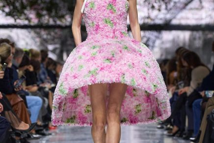 The colours come from nature, at times illuminated by camouflage prints that are in fact a trompe-l’oeil of roses.