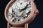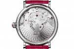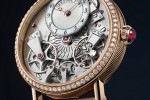 Unveiled at Baselworld 2016, the timepiece was the first model within the Tradition collection to be entirely dedicated to female watch lovers. Combining elegance and technicity, this model presents a ultra-modern graphic structure proudly exhibiting almost all the movement components on each side of the mainplate. Breguet chose to accentuate the finesse of this piece through finely feminine finishing touches, such as a Tahitian mother-of-pearl dial that is hand-engraved by an engine-turned barrel.