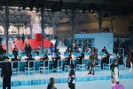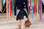 The staging for the collection was Flags, Paris 2022, a site-specific installation by artists Joe McShea and Edgar Mosa comprising flags in 13 different colors made of ribbons mounted on aluminum flagpoles and reacting to the movement of the models on the runway.