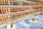 The palace’s story is told through film clips and photographs, but the true stars of this room are the shoes on display: 650 evening styles and 264 daytime styles, designed by Salvatore Ferragamo and his daughter Fiamma from the 1950s to the 1960s, in a setting reminiscent of the original room where they were keptto serve as a source of inspiration for new collections. A few of Ferragamo’s most famous wedgies from the 1930s and 1940s are arranged on a table.