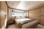Ferretti 960 makes the most of the layout concepts currently found even on larger models in its class: indeed, the new flagship is Ferretti Yachts’s first planing yacht boasting the master cabin forward, on the main deck, and as many as four guest cabins, all equally sized and with equivalent furnishings and fittings, located on the lower deck.