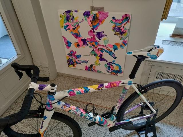 With its top-of-the-range specifications and timeless aesthetic, the Festka Scalatore offers more than just a means of transportation; it represents a testament to the fusion of artistry and cycling prowess. The lucky bidder will not only secure the fully built Festka Scalatore bicycle but also receive the accompanying canvas showcasing the same captivating composition.