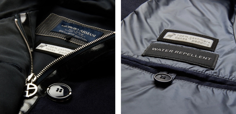 Giorgio Armani Cashmere Flakes Capsule Collection: Outerwear with exclusive padding in cashmere to keep the cold at bay.
