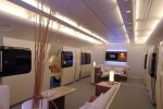 A380 First Class’s interior features 14 individual suites with electronically adjustable seat with programmable positions, mood lighting, enhanced cabin sound proofing and fully adjustable multi-zone massage function.