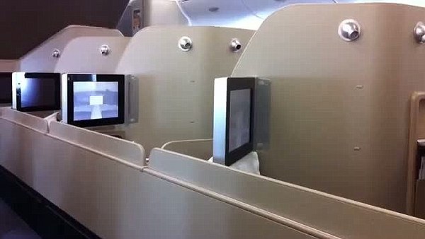 Electronically deployed 17 inch LCD widescreen video monitor. Touch screen control unit featuring personal flight map and operating all electronic functions including electronically adjustable privacy screens, noise cancelling headset port, PC power, USB and internet ports. Add to this designer amenities, pyjamas, soft furnishings and tableware featuring designs by Marc Newson, Collette Dinnigan and Akira Isogawa. High quality finishes include Edelman leather and real wood.