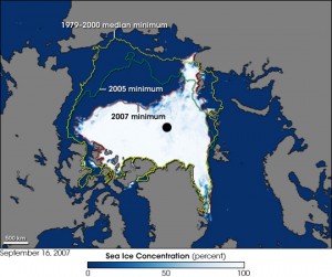 Arctic shrinkage as of 2007 compared to previous years
