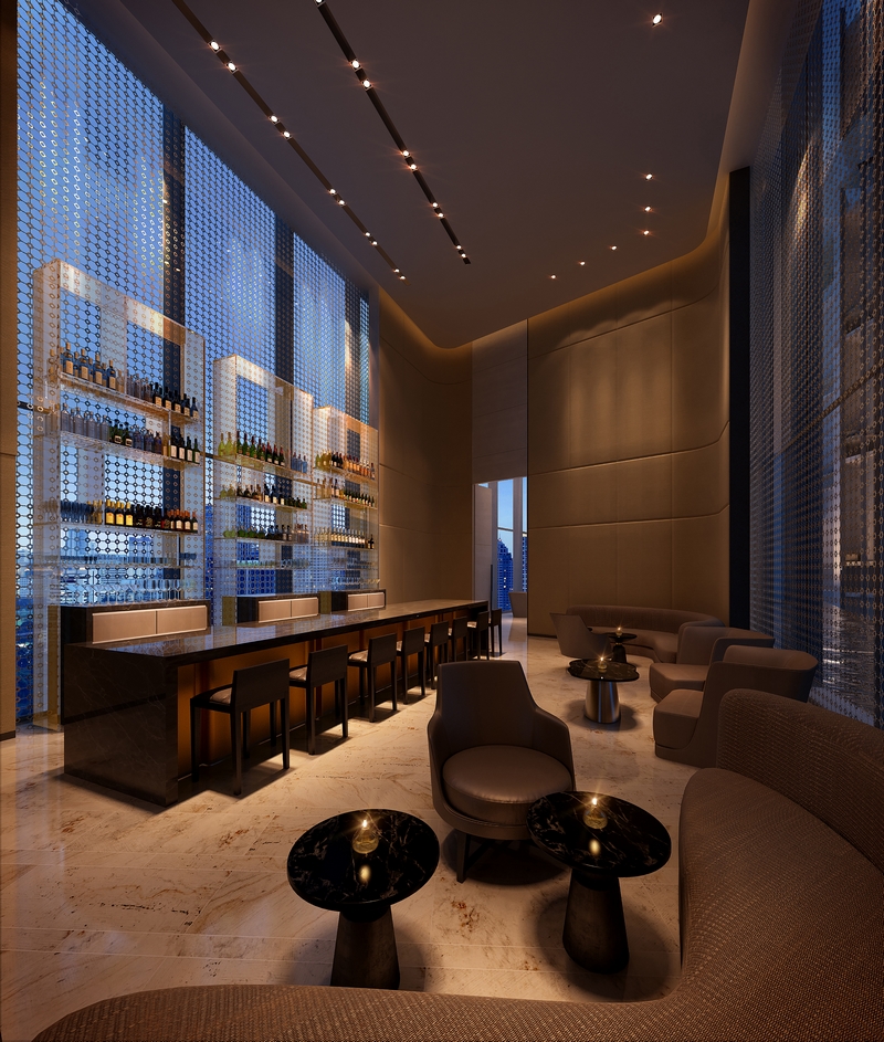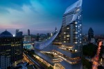 Park Hyatt Bangkok’s architecture is designed by AL_A, the London-based studio founded by Amanda Levete and Bangkok- based Pi Design (consultant architect of record). The hotel and an adjacent luxury shopping mall are bound together by a continual looped form merging plinth and tower. The twisted coil forms a three-dimensional figure of eight, a lucky number in Chinese culture. Drawing on motifs and patterns found in traditional Thai architecture, the eye-catching façade is clad in extruded aluminium tiles, creating a shimmering moiré-like pattern. The design comes together with spectacular views of the city from numerous outdoor terraces.