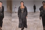 The team visit to Ireland, and a collaborative project in which the whole studio worked together on looms to convert a life drawing sketch into fabric, were “about slowing down time. There’s so much noise in the world, everyone is so rushed, we all constantly feel like we have no time. And embroidery takes a long time. So this season was about having a moment for us as a community to be with our own thoughts and consider what we think, rather than listening to anyone else.” At the end of the show, Burton brought her entire design team on to the catwalk to share her bow.