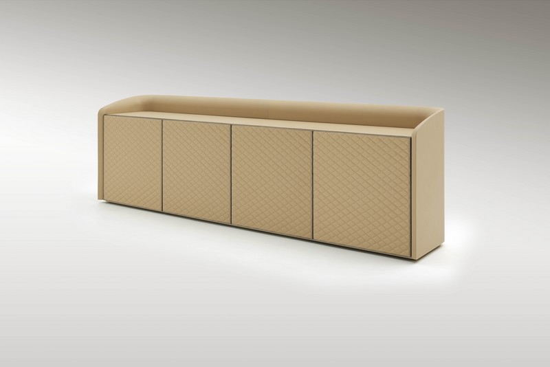 Lendal sideboard is an expression of the finest craftsmanship and scrupulous attention to detail. The classical connotations are remodelled in a fascinating and contemporary style. The leather doors are upholstered with the iconic diamond quilt stitch.