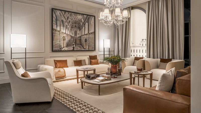 The palette expresses a series of neutral tones; a selection of greys with accents of blue and chocolate. Precious briar-root is presented in different veneers and colour variations. Importance is also given to the Ebony Macassar and walnut finishes in addition to onyx and Calacatta marble.