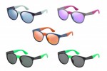 Edgy touches of color in shades of green, orange, cornflower blue, red, pink and yellow brighten the personality of the men’s and women’s square-shaped sunglasses.