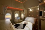 After three years of intensive work involving numerous drafts and tests, they created the new fully enclosed First-Class private suite inspired by Mercedes-Benz which is now being presented. With this suite Emirates is providing a new dimension in flying in the world’s largest Boeing 777 fleet: the suite offers a luxurious atmosphere with a generous amount of space and guarantees air passengers complete privacy. Elements inspired by the S-Class include the choice of materials, the high standard of workmanship, the controls and also the attractive ambient light system. This and the latest technology, such as virtual windows, and a function adopted from NASA space travel which imparts a sense of weightlessness, turn flying into a new experience.