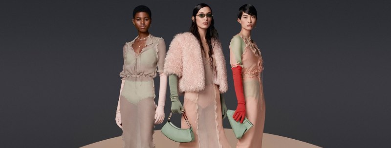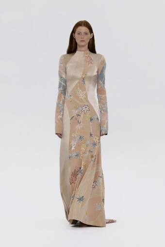 For the Fendi Fall/Winter 2022 collection, Kim Jones, Artistic Director of Couture and Womenswear, imagined a dialogue between Kyoto, Paris and Rome. The wardrobe is articulated by parallels in different pieces between East and West, masculine and feminine, the natural and man-made, and between tradition and the modern. Floral motifs on asymmetric dresses evoke the Japanese hand-painting technique of Kata Yuzen, while gowns set with glittering crystal express the spirit of Paris. This sense of French ‘Japonisme’ is set off by an Italian take on the tailleur. Nods to masculine codes of tailoring are found in Vicuna fabric suiting and cognac calf leather pieces. With this exquisitely elegant new wardrobe, Kim Jones bridges the past, present and future of the Roman couture Maison.
