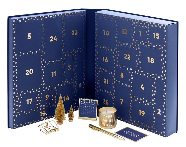 In a beautiful box featuring a sophisticated yet festive navy and gold stars design, it includes a mix of deliciousstationery, lifestyle items and gorgeous decorations from notepads and pens to affirmation cards, a key ring and pin,gift tags, page markers, and much more.