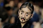 If last year it was all about velvet tailoring, it’s the LVD – the Little Velvet Dress – that you want to pay attention to now. Kane’s examples were supplemented by slouchy black ones at Chloé and ornate devoré at Givenchy, and Galliano’s Margiela had 30s-style frocks, which made even the mardy arm-crossed models look a bit elegant. That’s the thing about velvet. It’s quite grown-up on the whole, and that’s something to be celebrated in a world full of emojis, cat Instagram accounts and dungarees. See Julianne Moore in floor-length velvet on the arm of Kristen Stewart in a velvet suit at Chanel’s couture show (above) in July to get the idea. Double velvet wins.