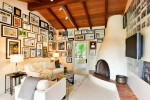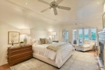 Outdoors, the resort-style entertaining area features an open-air covered living room, fireplace, outdoor kitchen and dining area, swimming pool, spa, and a pool house with an outdoor living room and bocce ball court. Sessions created the historic grounds, mature greenery, and palms and secret garden, all just 10 minutes from the beach.