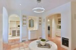 Nestled within the highly sought-after, private and rural community of The Covenant of Rancho Santa Fe, 6855 La Valle Plateada is a Holcombe-designed mansion featuring a main house and guest casita. Set upon 3.27 acres including impeccable gardens by award-winning landscape architect Kate Sessions, the Spanish Colonial Revival home includes 14 fireplaces; 10-foot ceilings throughout; antique Spanish mesquite doors; double framed windows and archways; a master retreat with a gas fireplace, sitting room, his and hers spa baths with patio access and secret garden views; a chef’s kitchen with a wood-burning pizza oven; glass ceiling conservatory with a climate-controlled wine cellar; two-story library; billiards room, full-size gym and dance studio. The guest casita includes a full kitchen, two bedrooms, one bathroom and a private outdoor patio while the attached guest suite has a full kitchen.