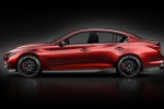 Infiniti Q50 Eau Rouge highlights include deep and detailed carbon fiber front splitter, rear diffuser and side sill skirts; carbon fiber roof and door mirror casings; 21-inch lightweight forged alloy wheels; and a dual-exit exhaust sports system below a large integrated rear spoiler.