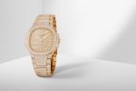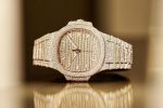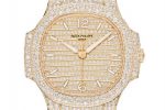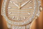 The iconic design of ladies’ Nautilus watches comes in various haute joaillerie versions set with brilliant-cut diamonds or baguette diamonds. From 2013 to 2018, Patek Philippe offered a rose gold model that including the dial was adorned with diamonds in a random pavé setting (also referred to as snow-setting (Ref. 7021/1R-001).