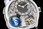 After a decade dedicated entirely to invention and development of new mechanisms for tourbillon watch complication, Greubel Forsey stunned the watchmaking world with a new artwork – the reinterpreted GMT watch indicating a second time zone with a three-dimensional temporal representation. The case features a rotating terrestrial globe with a truly original view of time all over the world.