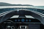 The Frauscher × Porsche 850 Fantom Air retains the 8.67-meter-long and 2.49-meter-wide hull of the Frauscher 858 Fantom Air day cruiser, providing ample space for up to nine passengers. A rear swimming platform leads to a spacious lounge area with two comfortable sunbathing pads. A central aisle connects the back of the boat to the free-standing helm and cockpit, while two additional upholstered benches in the front invite passengers to relax in style.