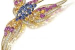 After opening with the Soleil d’Or yellow diamond, the retrospective closes with a look at the ultra-luxe world of exceptional pieces. Bathed in a quasi-celestial light are amazing treasures such as a diamond flower brooch set with diamonds and pink diamonds, or pearly marquetry evening bags, all revealing Fred’s bold creative freedom.