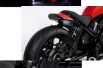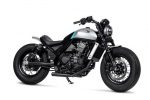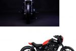 Inspired by the ‘elemental’ design of the CMX1100 Rebel, this interpretation has a more custom feel, pushing it even further toward the bobber style. The swingarm and suspension are stock, but lowered 25mm at the front while custom-built black-spoke wheels wear fat Bridgestone tyres.