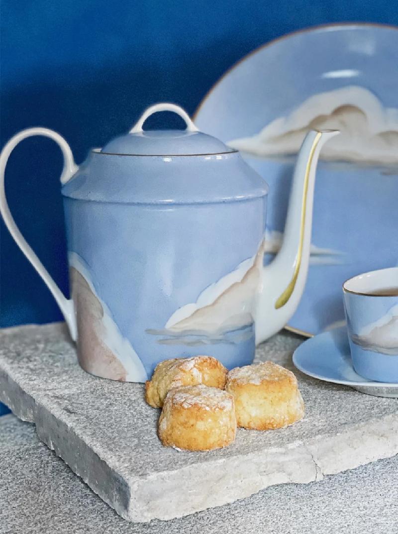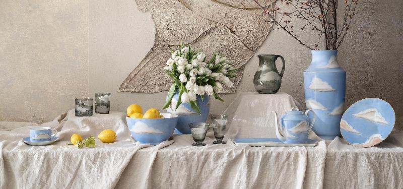 New York designer Jonathan Hansen, having previously teamed up with L’Objet, Thom Browne and Aerin Lauder, has partnered with legendary porcelain painter Marie Daâge for his latest design collaboration. Inspired by spectacular Renaissance ceilings, Jonathan Hansen x Marie Daâge In the Clouds tableware features handpainted depictions of clouds, finished in 24kt gold, on pieces handcrafted in Limoges porcelain.