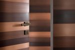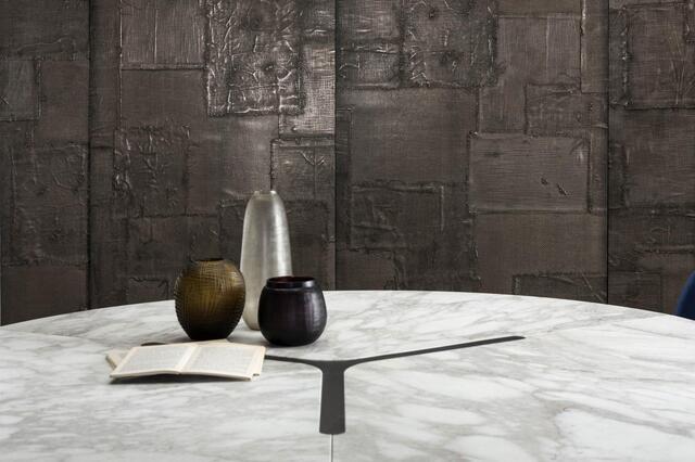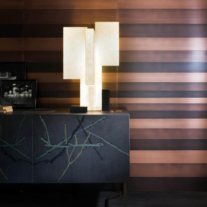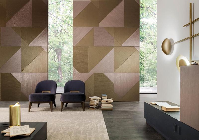 The Tatami decoration is an excellent example of this monochromatic philosophy: the combinations “Bronze and Anodized Gold” or “Silver and Nickel” create perfect monochromatic nuances, while the geometric pattern and the special 3D texture give a touch of glamour.
