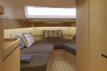 Below deck, the full, closed bow design creates additional space. The Swan OverShadow offers two alternative layouts: a double bed configuration or a twin bed configuration. The double bed configuration provides enhanced comfort for weekend getaways, while the twin bed configuration offers more floor space, creating a seating area. Both layouts feature a larger and more spacious head (bathroom) compared to their predecessor. The objective in designing the Swan OverShadow was to create a yacht with more livable space onboard. The front cabin has been made more spacious, and the helm area provides increased protection. The Swan OverShadow caters to longer stays and weekend getaways, expanding the range of use cases for Nautor Swan yachts.