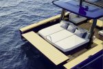 The stern platform offers three positions: a central position for driving, an upper position that serves as a passarelle, and a below water level position that facilitates access to the water for swimming or engaging in watersports.