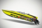 With an output of 1656 Kilowatts (2,220hp) and a maximum torque of 3000 Newton metres (2,213 ft-lb,) the “Cigarette AMG Electric Drive Concept” is considered to be world’s most advanced performance boat. The boat was inspired by the SLS AMG Coupè Electric Drive, the world’s most powerful and fastest electrically driven series production vehicle in America.