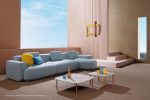 Each furniture module is made from a highly comfortable and non-deformable polyurethane foam, resting on a plywood platform covered in fabric that is raised 3 cm of the ground by small feet. The result is exceptionally soft, comfortable sofa in which organically-shaped seats subtly contrast with the more geometric and rigorous shapes of the backrest and armrests. Available in two shapes and sizes, the backrest cushions further contribute to the sofa’s overall comfort, providing effective lumbar support.